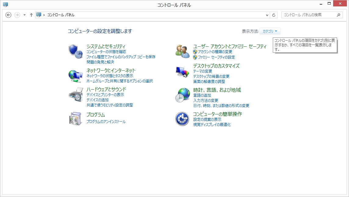 2.右上の[表示方法]を 「カテゴリ」→「大きいアイコン」に変更します。